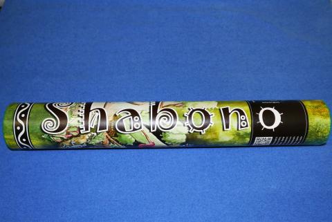Der Schamane übt mit den Kindern des Stammes Auffassungsgabe und Schnelligkeit und nutzt dazu Münzen mit Tierzeichnungen, die die Spieler schnellstmöglich nach Vorgabe sammeln. In Runde I von Shabono sammelt man Münzen eines Tiers, in Runde II Münzen von zwei verschiedenen Tieren. Im Spiel sind Gürteltier, Ibis, Baumsteigerfrosch, Blattheuschrecke, Wasserschwein und Tukan, er ist ein Joker für jedes andere Tier. In Runde I zieht jeder Spieler ein Tier aus dem Stapel mit einem Wasserfall, der Schamane zuletzt, für ihn bestimmt die Karte die Blütenfarbe, ein Wurf der „Münze der schnellen Hand“ bestimmt, ob mit der linken oder rechten Hand gesammelt wird, Zeitmünzen liegen gut gemischt, Kolibri nach oben, aus. Mit dem Ruf „Shabono“ des Schamanen beginnen alle zu sammeln - die Spieler suchen und sammeln ihr Tier einzeln mit der korrekten Hand und stapeln gefundene Tiere in ihrem Sammelring. Der Schamane sucht gleichzeitig unter seinen Zeitmünzen die Blume seiner Blütenfarbe, nicht passende Münzen dreht er wieder um. Hat er alle vier Blumen gefunden, ruft er wieder „Shabono“ und die Suche endet für alle. Nun gibt es für einseitige Münzen einen Punkt, für doppelseitige zwei, Tukane wertet man meistbringend. Waren alle einmal Schamane, sammelt man in Runde II zwei Tiere und der Schamane dreht drei verschiedene Blüten um. Varianten mit Münzen für spezielle Tiere. So wie schon Moeraki-Kemu ist auch Shabono ein ausgesprochen schönes Spiel hinsichtlich Grafik und Material, der Mechanismus ist gelungen variiert und die Sondermünzen Spinne, Ameisenbär, Fledermaus und Faultierhänger bringen Taktik ins hektische Sammeln.