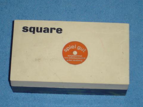 analog Geometric Dominoes, gleiche Dose. Name eingedruckt, dazu Kleber „Spiel gut“ Legespiel, quadratische Plastiksteine in rot mit weißem Innenmuster, Steine sollen wie Dominos angelegt werden. Ohne Regel Erhalten vom Sohn von Franz Weigl, keine sonstige Zuordnung möglich