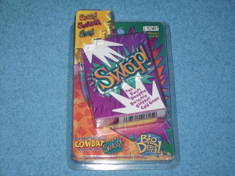 Swap! Kartenspiel mit Reaktionsmechanismus, man soll die Karten loswerden. Mechanismus Ähnlich Uno, die abgelegten Karten geben vor, was man als nächstes macht. Ludografische Angaben Verlage: Patch Products Inc. Inventarnummer: 17836 Kategorien: Karten, Reaktion Erscheinungsjahr 2000 Spieler 2 - 6 Spieler Alter 8 - 99 Jahren Dauer bis 20 Minuten