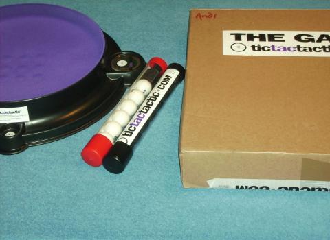 Auf den ersten Blick ein Würfeltableau, auf den zweiten Blick ein Würfeltableau mit 9 Vertiefungen, zusammen mit dem Namen denkt man an Tic Tac Toe, aber wozu das Tableau mit nach innen ins Zentrum abfallendem Boden – nun, alles miteinander ergibt ein neues Spiel, eine Mischung aus Tic Tac Toe und Roulette, und ein wenig Billard spielt auch noch hinein. Man rollt abwechselnd die Kugel wie beim Roulette um das Tableau, damit sie am Ende in eine der Vertiefungen fällt, landet sie nicht in einer Vertiefung, nimmt man sie zurück. Jederzeit kann man am Rand einen aTaCit einsetzen, einen Deflektor, der die Kugel ablenken soll, aber die Kugel muss vorher einen Halbkreis zurücklegen, bevor sie den Deflektor trifft. Wer zuerst 3 in einer Reihe schafft, gewinnt und bekommt eine Kugel vom Gegner, wer zwei Reihen gleichzeitig komplettiert, bekommt 2 Kugeln, eine aus der Vertiefung gestoßene Kugel wird auch zurückgenommen. Wer zuerst 5 gegnerische Kugeln gewonnen hat, gewinnt das Spiel.