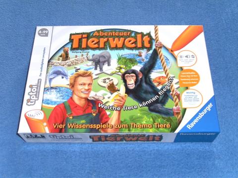 Vier Wissensspiele zum Thema Tiere bietet dieses Spiel im Rahmen des tiptoi-Systems. Zu mehr als 50 beliebten Tieren erfahren die Spieler mit Hilfe des Stifts alles über deren wichtigste Eigenschaften und können das Wissen in den vier Spielen anwenden und vertiefen. Der Stift spielt die Tierstimmen vor, die erkannt werden sollen, mit den Tierspur-Plättchen kann man Fährten erkennen. Im Spiel beantwortet man für sich selbst auch so interessante Fragen wie „Welche Tiere können fliegen?“. 50 Puzzle-Tierteile und 21 Tierspurplättchen geben bei Antippen mit dem tiptoi-Stift die interessanten Fakten preis.