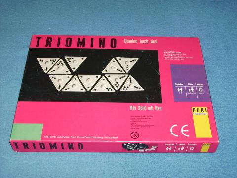 Dieses Spiel gehört zu den Klassikern der Legespiele, im Prinzip funktioniert es wie Domino - Stein an Stein und Zahl an Zahl - aber die Steine schauen anders aus. Es sind Dreiecke, auf denen drei Ecken mit verschiedenen Zahlen = Punkten beschriftet sind. Angelegt wird wie im Domino, gleiche Zahl an gleiche Zahl.