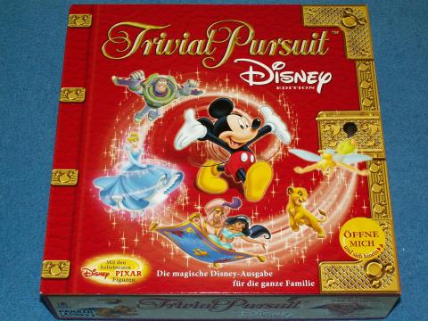 Wieder eine neue Ausgabe des Trivia-Klassikers, so neu dann auch nicht, Disney-Editionen hat es schon mehrere gegeben, teils unter dem Label Parker, aber diesmal wurde die Ausgabe wieder überarbeitet und auch optisch völlig neu gestaltet. Die Wissensspeicher haben Micky Mouse Ohren, der Kartenhalter ist als Zauberbuch gestaltet und für jüngere Spieler kam die Hexenhut-Spielregel dazu. Die Kategorien dieser Ausgabe sind blau – Helden und Heldinnen, rosa – es war einmal, gelb – Monster & Bösewichte, braun – Helfer & Gute Geister, grün – Schauplätze & Drumherum sowie orange – Disneys Wunderwelt.