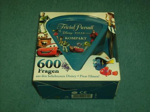 Überarbeitete Ausgabe des Trivia-Klassikers. In einer Plastikdose, die in der Form einer der Wissensecken entspricht, finden sich 600 Fragen zu den beliebtesten Disney Pixar Filmen. Man kann mit dieser Ausgabe allein spielen und die Kategorien mit dem beigefügten Spezialwürfel festlegen. Kategorien sind blau - Helden & Heldinnen, rosa - Monster & Bösewichte, gelb - Nebenrollen, braun - Schauplätze & Requisiten, grün – Action und orange - Sprüche & Zitate. Die Spielregeln sind ebenfalls auf Karten gedruckt, insgesamt eine gut gelungene Ausgabe auch für die Reise.