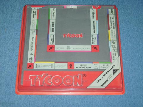 DDKT/Monopoly-Verschnitt, mit Firmenwerbung Wird von einer Firma Tycoon unter demselben Namen an Unternehmen verkauft, deren Name steht quar über die Ecke rechts unten am Titelblatt