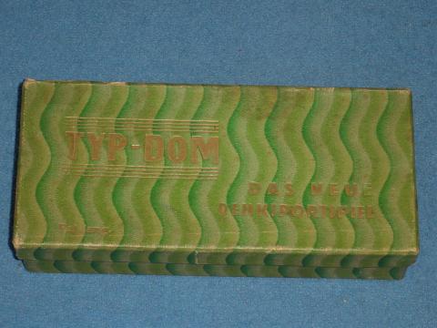 Holzsteine, schon in Puzzlesteinform, in rot und schwarz, mit Buchstaben bedruckt Schachtel grün, gemustert, in Gold und in deutscher Sprache bedruckt Keine Regel, keine sonstigen Angaben, Erhalten vom Sohn von Franz Weigl, keine sonstige Zuordnung möglich