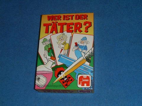 Detektivspiel. Ein Spieler wird zum Augenzeugen, mischt die Karten und schaut sich die oberste an. Unterscheidungsmerkmale sind Alter, Geschlecht, Farbe der Kleidung und Tatwaffe. Der Augenzeuge deckt nun einzeln Karten auf und legt sie in einer Reihe an und sagt bei jeder Karten, auf der ein Merkmal mit seiner Täterkarte übereinstimmt, „verdächtig“. Wer glaubt, aus den Hinweisen den Täter nennen zu können, ruft „verhaftet“ und nennt alle Merkmale. Stimmen sie überein, bekommt er einen Punkt. Wer nach Spielende die meisten Punkte hat, gewinnt.