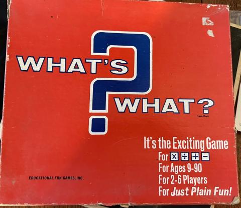 What's What? Ludografische Angaben Verlage: Educational Fun Games Inventarnummer: 7052 Erscheinungsjahr 1975 Spieler 2 - 6 Spieler Alter 9 - 99 Jahren