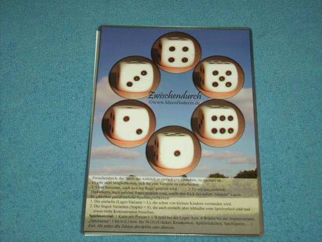 Zwischendurch Autoren: Maria Donner Erscheinungsjahr 2006 Spieler 2 - 6 Spieler Alter 6 - 99 Jahren Dauer bis 30 Minuten Ansehen
