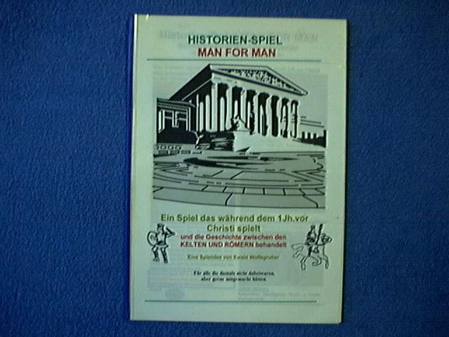 HISTORIEN-SPIEL MAN FOR MAN Römer & Kelten Autoren: Ewald Wolfsgruber Erscheinungsjahr 1997 Spieler 2 - 8 Spieler Alter 8 - 99 Jahren Dauer bis 60 Minuten Ansehen
