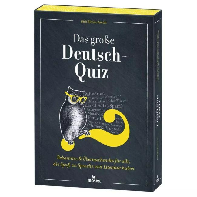 Das große Deutsch-Quiz Autoren: Dirk Blechschmidt Illustratoren: Stephanie Dünhölter Erscheinungsjahr 2022 Spieler 1 - 99 Spieler Alter ab 14 Jahren Dauer bis 30 Minuten Ansehen